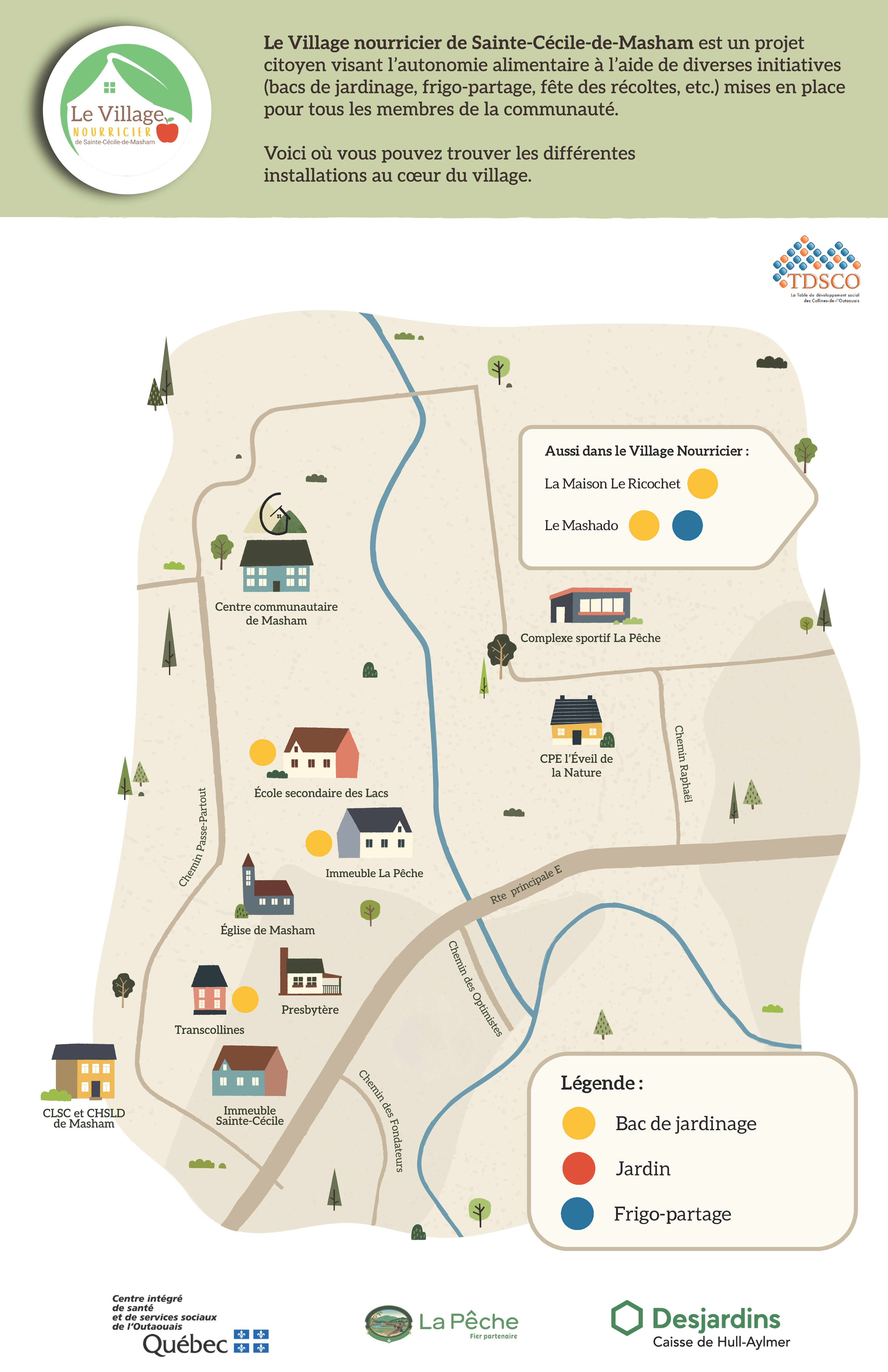 Il y a quatre ans naissait le Village nourricier de Sainte-Cécile-de-Masham, une initiative de solidarité visant à favoriser l’autonomie alimentaire dans notre région. L’organisme est venu présenter sa carte recensant l’ensemble des bacs de jardinage et le frigo-partage accessibles à toute la communauté. Félicitations pour l’ensemble de vos initiatives!